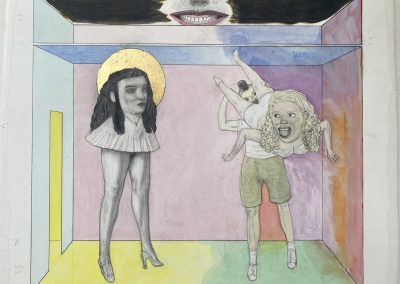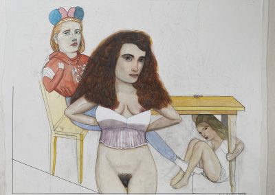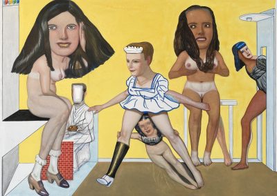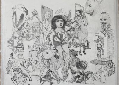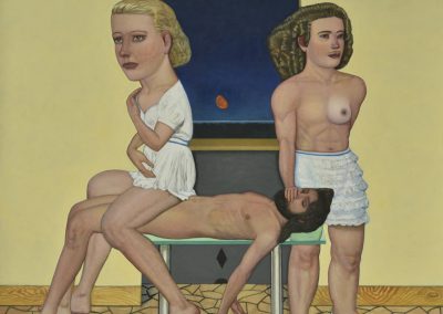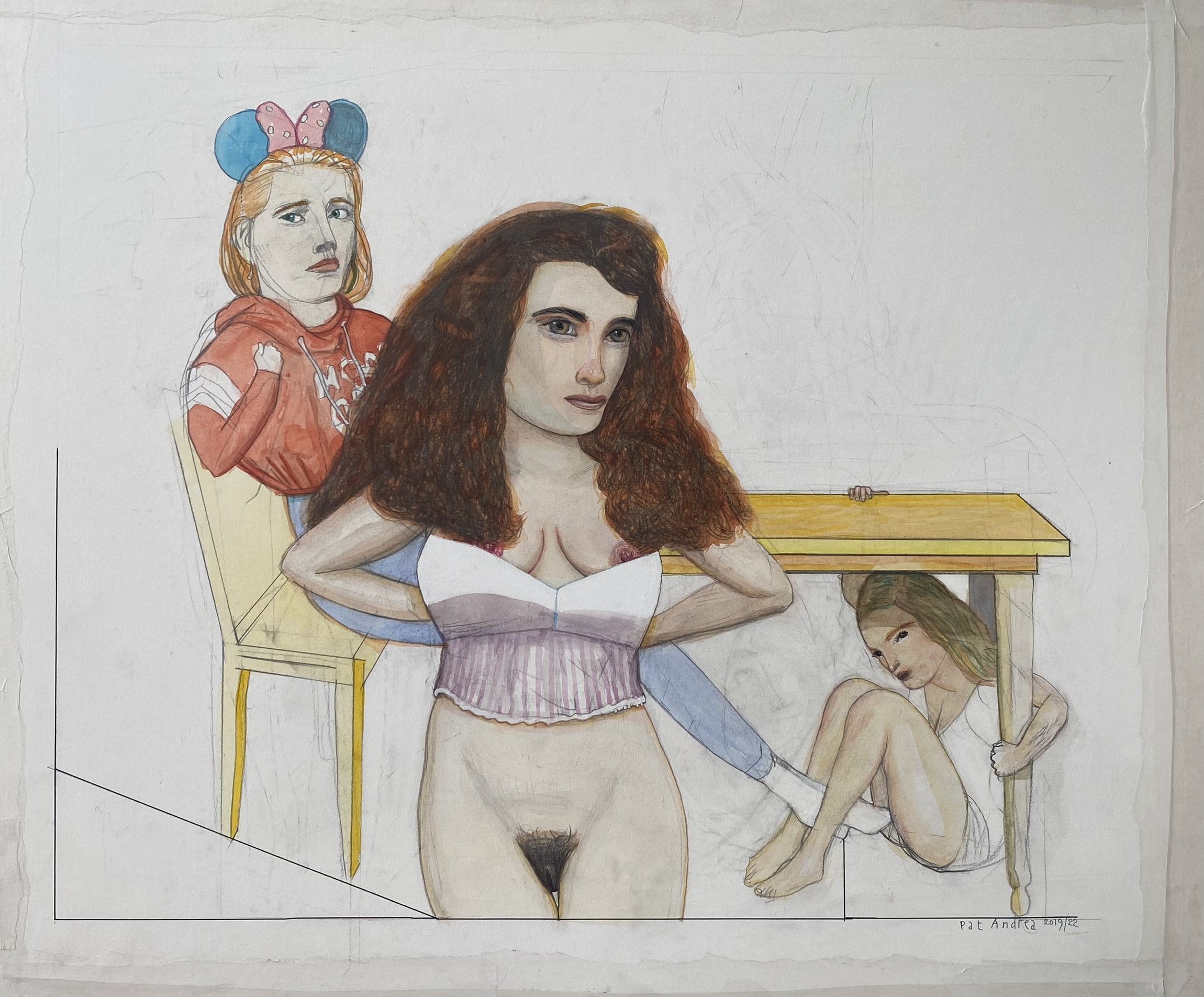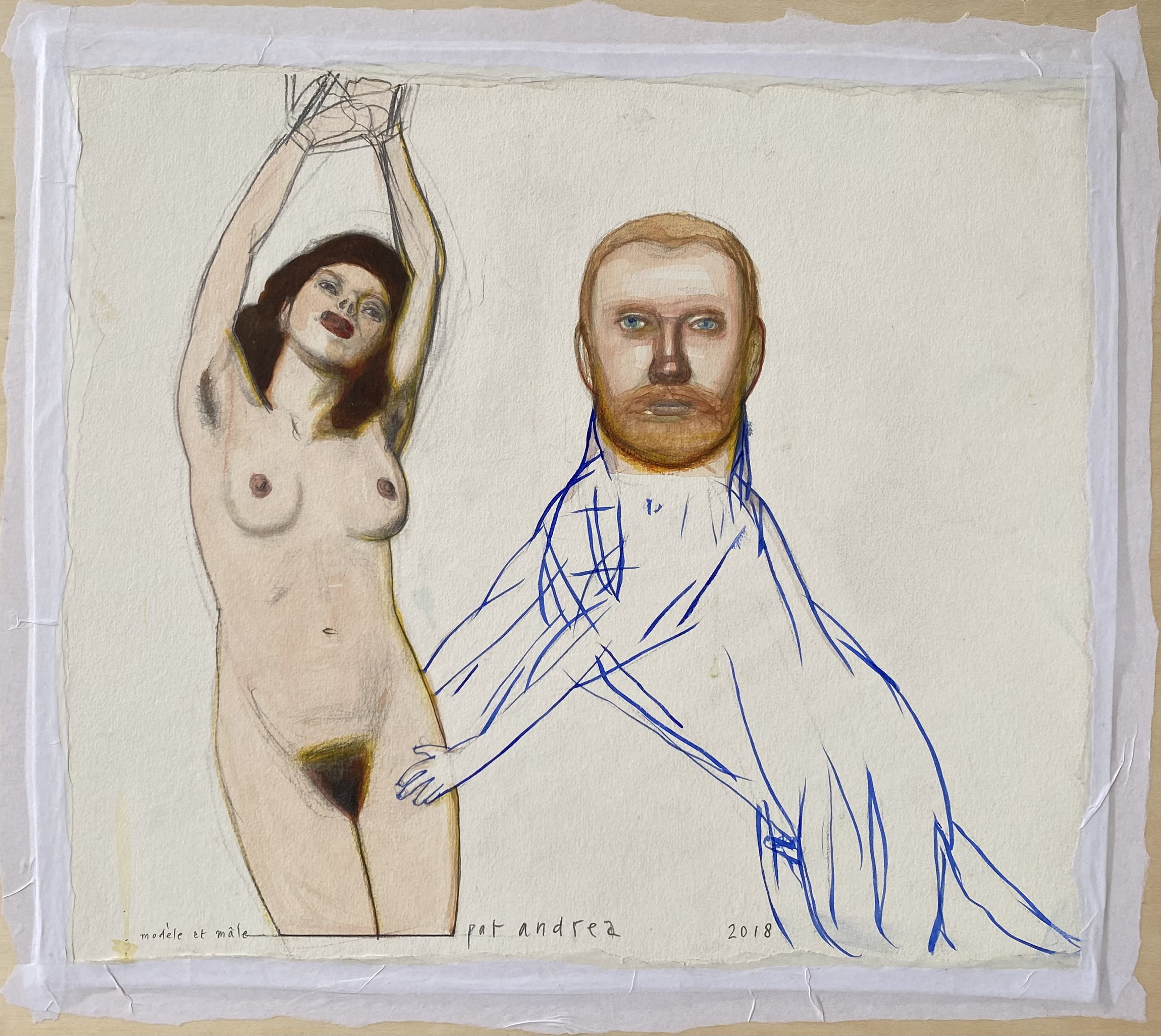 Ses œuvres, à la croisée de l’Hyperréalisme et du Surréalisme, empreintes de visions extravagantes, d’humour macabre, d’irrationnel, de parodies morbides de grands sujets classiques, nous déconcertent d’autant plus que la Femme y est souveraine. C’est Elle qui domine le monde. Pat Andrea en est convaincu et s’attache à exprimer sa toute-puissance par le dessin ou la peinture.