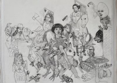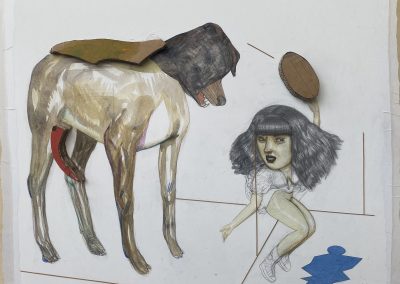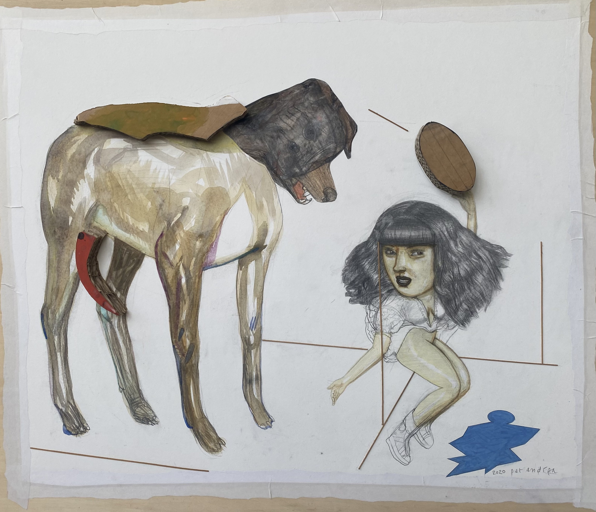 2020. Technique mixte sur papier et collage carton découpé en relief, 60 x 70 cm.
