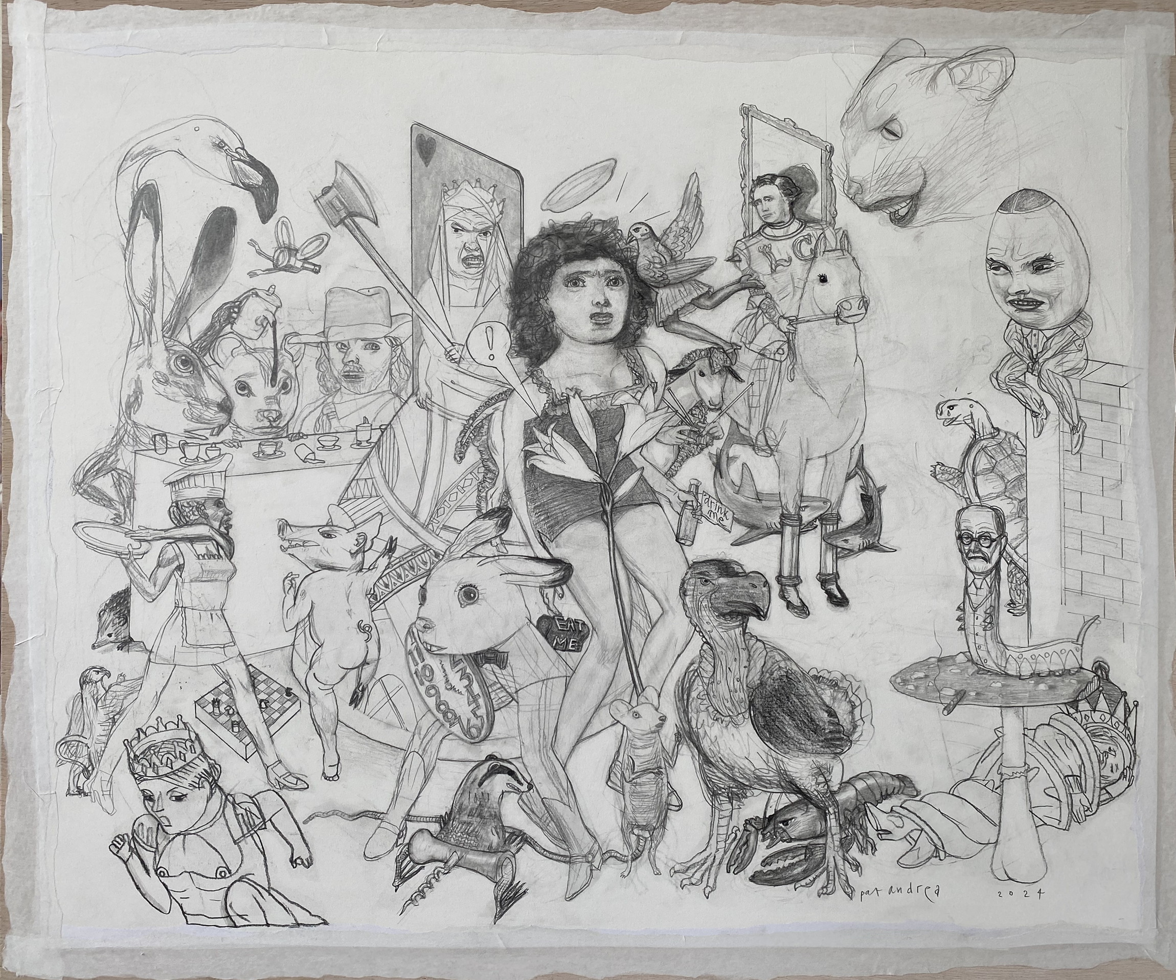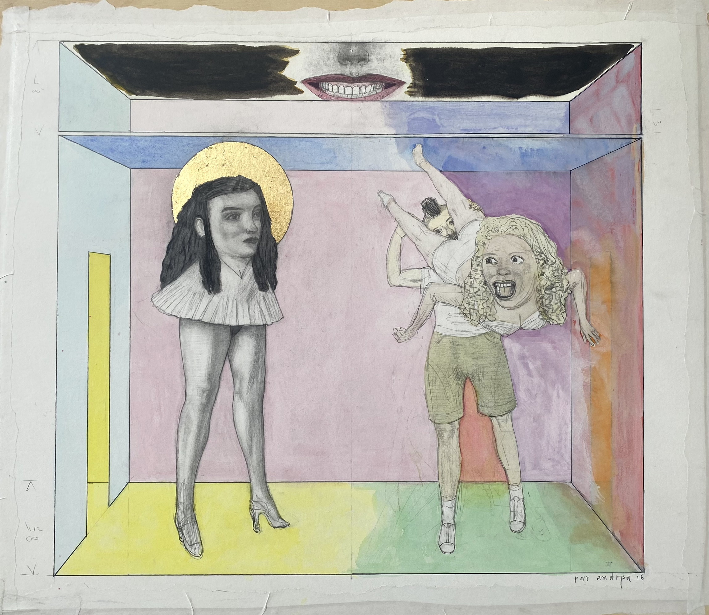 L’exposition « Pat Andrea, La visite surprise », réunit des œuvres, peintures et dessins de Pat Andrea, artiste néerlandais vivant entre Paris et Buenos Aires depuis les années 70.